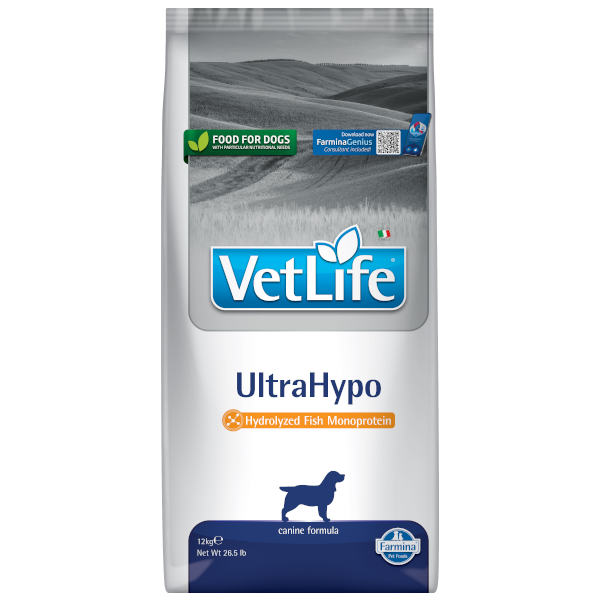 Farmina Vet Life UltraHypo to weterynaryjna karma dla psów stworzona we współpracy z Wydziałem Żywienia Zwierząt Uniwersytetu Fryderyka II w Neapolu. Jest to pełnoporcjowy produkt o specjalnym zastosowaniu w przypadku: